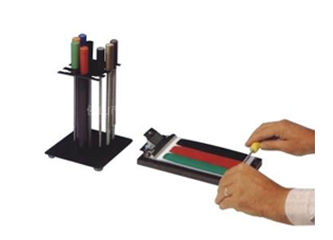 K Hand Coater 提供了一种简单有效的涂布方法,用这种方法可以将涂料涂于许多 种底材上,包括纸张、纸板、塑胶膜、箔、 金属板、玻璃板和木板等等。一次操作能够 同时涂两种或更多种涂料,因此是制作对比样的理想仪器。